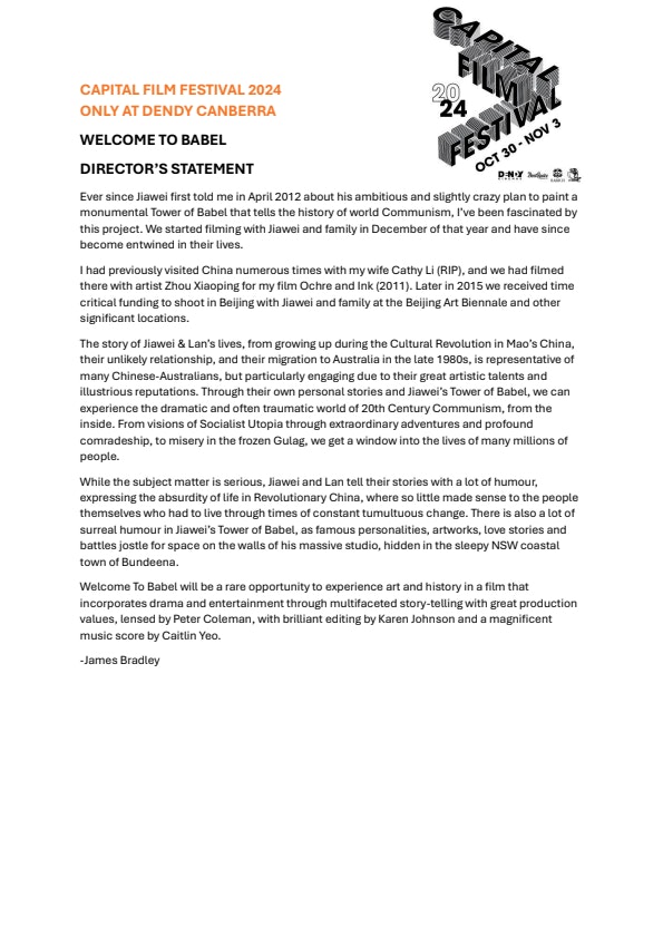 Capital Film Festival - Welcome To Babel - Directors Notes
